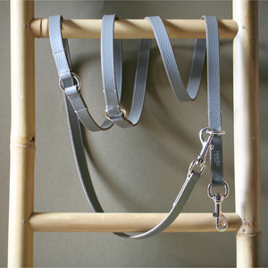 Completa il tuo collare o la tua pettorina H con il Guinzaglio di Timotèo. Realizzato con maestria artigianale italiana, in morbida nappa martellata, garantisce resistenza e durata nel tempo. Le cuciture rinforzate e la cura dei dettagli riflettono la qualità superiore del prodotto. I bordi arrotondati sono pensati per il massimo comfort e l'anello superiore può ospitare la TT Bag, creando un mix distintivo.